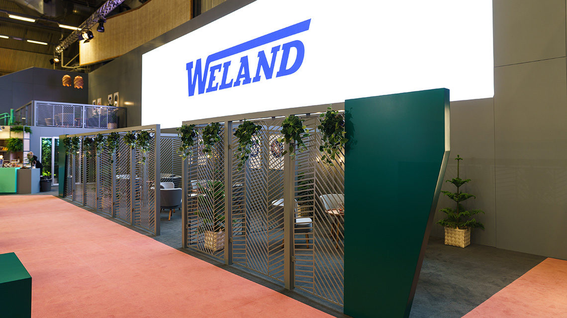 In contrast to the hard, steel products of the company, we created a more inviting and much softer environment. We took advantage of the height available to attract attention and awareness in a trade convention densely packed with competing messages. Leading up to the event, we conducted a remake of the brand to clean up its expression and adapt it to digital environment. Even our choice of furniture, colours and materials accentuated the heritage of the group. The result was a brand presence impossible to ignore. Through strategic choices of exposure, interviews and strong social media activation, Weland managed to cut through the noise and set the tone for the entire fair. But most important, the solution built a sense of pride for all involved to work for and represent the Weland group of companies.